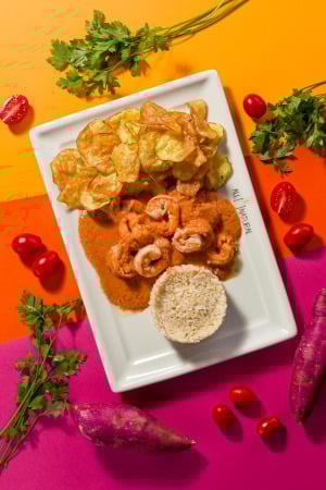 Strogonoff de camarão: Um clássico em sua releitura ALL, que veio para o time dos strogonoffs que já fazem muito sucesso no menu fixo. Camarões mergulhados em um delicioso molho pomodoro caseiro, com um toque distinto de mostarda Dijon, finalizado com creme de leite zero lactose. Acompanha arroz e integral e batata doce chips.