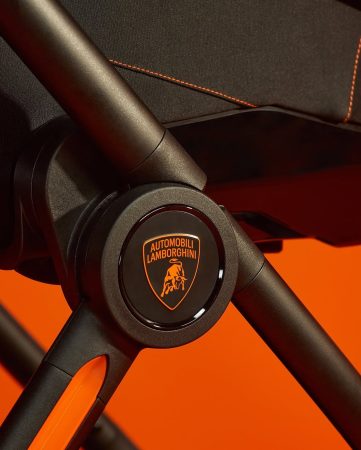Inspirado no design arrojado dos automóveis da marca italiana, o carrinho combina luxo, funcionalidade e detalhes exclusivos. O Reef AL Arancio traz acabamentos em couro e camurça de padrão automotivo, emblemas da Lamborghini e detalhes vibrantes na cor laranja, uma assinatura visual característica da montadora.