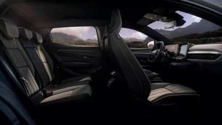 A nova plataforma modular CMF-EV faz com que o veículo seja bastante espaçoso: a marca revela que a distância entre os eixos é de 2,68 m e o comprimento total do novo Megane E-Tech é de 4,20 m.