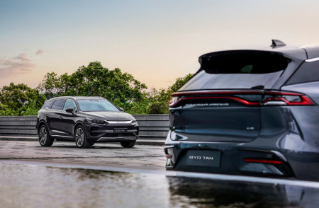 SUV 100% elétrico premium de 7 lugares, construído sobre a e-Platform 3.0, equipado com bateria Blade de 108,8 kWh com recarga de 30 % a 80 % em apenas 30 minutos (110 kW DC) e 8 anos de garantia. Destaca-se pela performance robusta: 517 cv e 700 N·m de torque, aceleração de 0–100 km/h em 4,9 s, autonomia de até 530 km (WLTP), e suspensão eletrônica semiativa DiSus-C — um pacote sofisticado voltado ao conforto e condução refinada. Preço aproximadamente R$ 536.800,00.