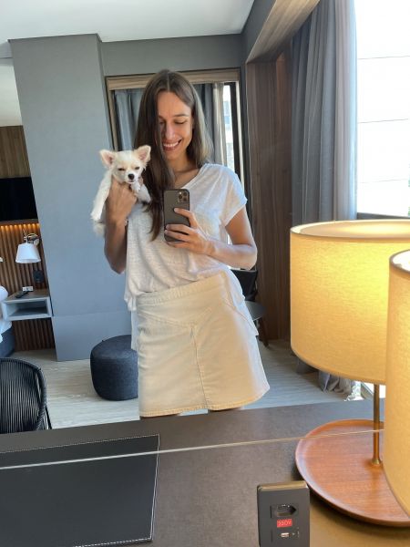 Fiz reserva em quatro hotéis sem defeitos da capital paulistana, todos com serviço pet-friendly impecável. A primeira parada foi no Fasano, que há tempos conta com uma clientela de quatro patas bastante fiel e encantada Madê curtindo suas hospedagens. pelo programa VIP – Very Important Pet. É exatamente assim que os bichinhos são tratados: Madê ganhou carta de boas-vindas, água em garrafa com rótulo personalizado, tapete higiênico e cama cinco estrelas, que fez sucesso que pode ser comprada na Selezione Fasano.