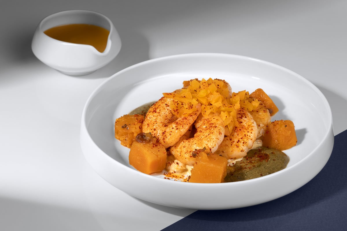 Quanto às sobremesas, Nina Métayer continuará sua parceria com a Air France, iniciada em abril de 2024. Eleita Melhor Chef Pâtissier do Mundo em 2023, ela assina uma seleção de doces leves e refinados, incluindo um delicioso crocante de avelã com caramelo e uma fatia de manga com coco ao toque de limão.