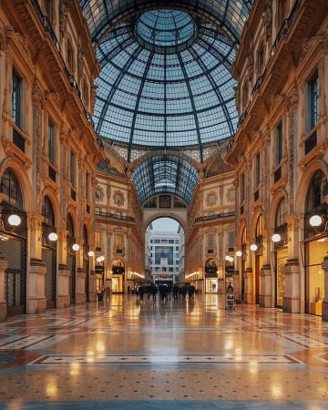 Essa é a galeria comercial mais antiga da Itália e um passeio gostoso para quem quiser fazer compras e conhecer um pouco mais da arquitetura. Marcas famosas como Armani, Louis Vuitton e Prada estão presentes nesse espaço, compondo a grande variedade de opções de luxo disponíveis. Aproveite e faça uma parada para se deliciar em uma sorveteria após um longo dia de caminhada.