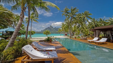 No Four Seasons Resort Bora Bora, a piscina de borda infinita da Three-Bedroom Premier Beachfront Villa Estate proporciona vistas deslumbrantes do pôr do sol e do Monte Otemanu. Um jantar numa praia isolada com show de dançarinos polinésios envolve os hóspedes na atmosfera do destino. Viajantes mais aventureiros podem mergulhar com guias locais no Oceano Pacífico para explorar a rica vida marinha da região.