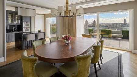 O histórico e vibrante East End londrino pode ser explorado a partir do icônico Four Seasons Hotel London at Ten Trinity Square. As opções gastronômicas incluem o estrelado restaurante La Dame de Pic London ou um menu personalizado elaborado por um chef na cozinha privativa da Crown Residence, private retreat de três quartos, com vista para a Torre de Londres, a Tower Bridge e o Rio Tâmisa. Um elevador particular leva diretamente à residência, com a máxima privacidade.