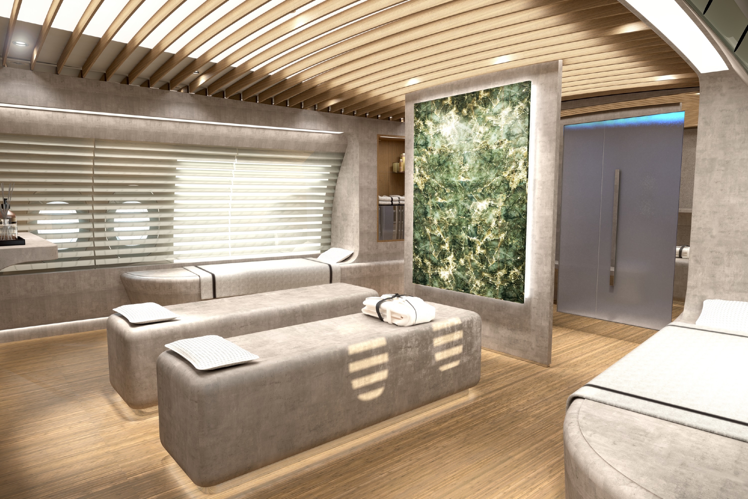 A alemã Lufthansa dá um outro sentido ao termo exclusividade: quem embarcar em um Airbus A350 VIP terá um avião inteiro para si e seus convidados. Preparado para fazer passageiros se sentirem em casa, o interior da aeronave conta com sofás, mesas de reunião, cama de casal, banheiros particulares e móveis do que há de mais luxuoso e sofisticado no design. Há cinema com telão e até spa com ambiente umidificado, mesas para massagem, chuveiro e banheira de hidromassagem.