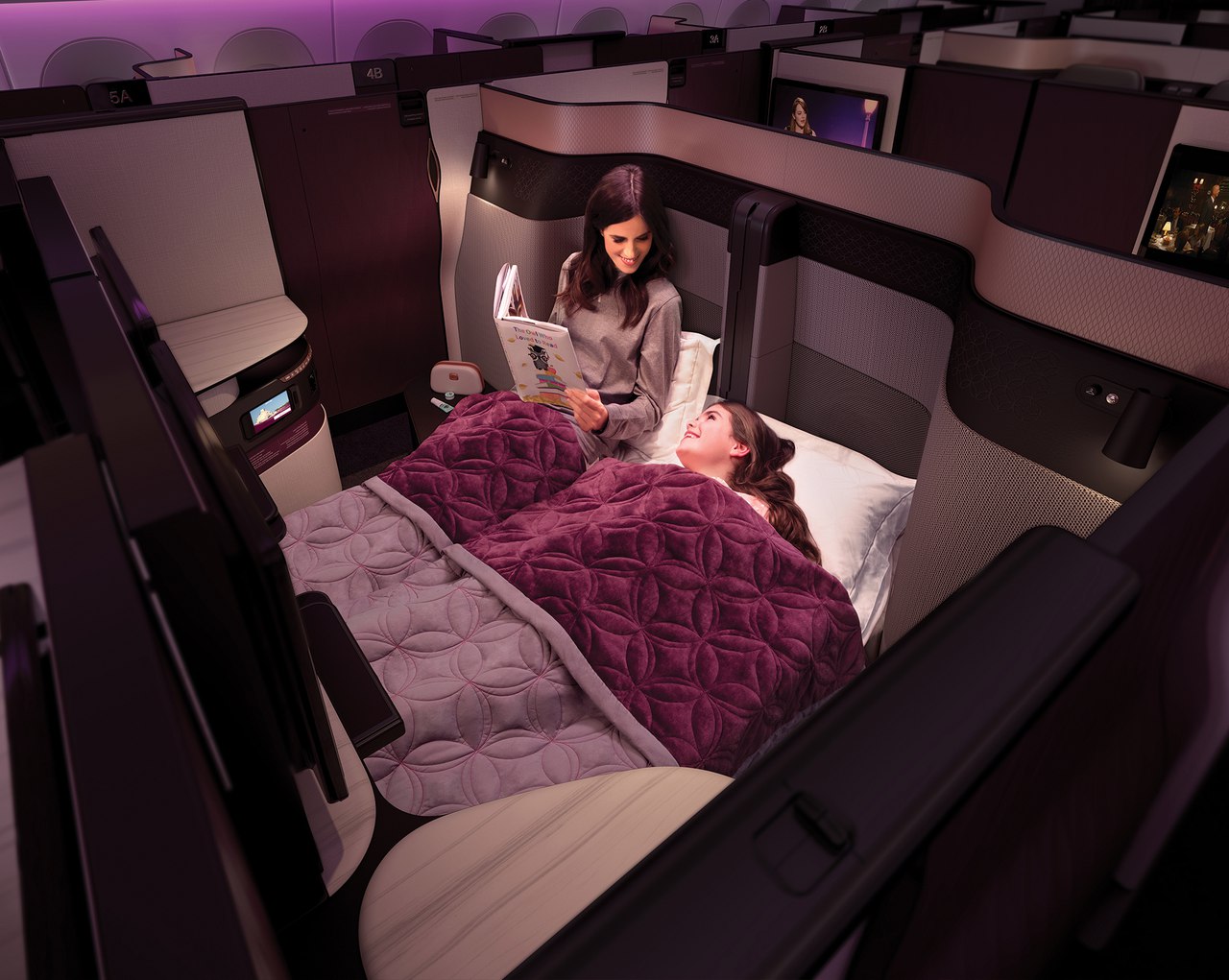 O QSuite é um novo conceito da Qatar Airways que permite a passageiros da classe executiva personalizarem seus ambientes, formando, por exemplo, uma cama de casal ou um espaço exclusivo para quatro pessoas. São ambientes privados nas alturas, com direito a aviso de Não perturbe, jantar sob demanda e poltronas de couro italiano costurado à mão.