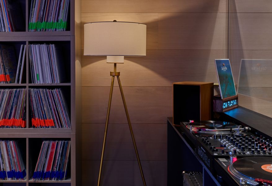 Quem dá o tom do ambiente é o DJ Dylan Regan, girando faixas de sua coleção de 4 mil discos de vinil. Ele criou uma sala audiófila com toca-discos Technics originais, alto-falantes Klipsch Horn e mixers analógicos de primeira linha. Pedidos de música ainda são bem-vindos na segurança de uma barreira de acrílico entre o DJ e o visitante.
