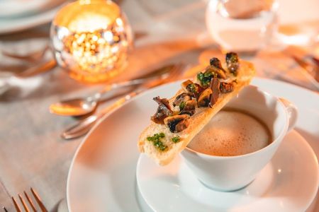 No quesito gastronomia, o programa inclui café da manhã servido no restaurante Bateiras, boas-vindas com frutas e ganache de chocolate, 1 jantar à la carte para o casal e uma sessão de fondue de chocolates, ambos servidos no restaurante principal do hotel.