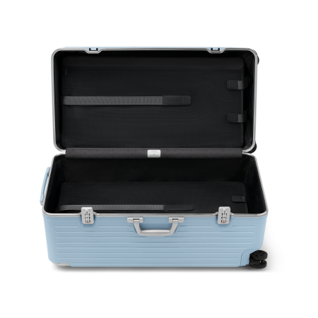 Sky Blue é a primeira cor sazonal lançada no modelo Hybrid Trunk Plus, um design vertical e elegante, com base compacta que garante manobrabilidade suave. Recentemente apresentada nas cores permanentes da coleção, o novo tamanho foi desenvolvido para viagens de duas semanas ou mais e traz uma das silhuetas mais icônicas da RIMOWA para a linha Hybrid. Projetada para os viajantes mais exigentes, toda a coleção Hybrid oferece os companheiros ideais para todas as jornadas da vida – e, como todas as malas RIMOWA adquiridas a partir de 25 de julho de 2022, conta com garantia vitalícia.