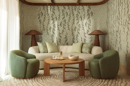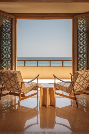 Como em todas as propriedades da Royal Mansour Collection, a arquitetura do resort combina elegantemente o estilo contemporâneo e a tradição marroquina. Tecelagem, azulejos zellige, mosaicos de mármore, pisos de parquet e tetos embutidos foram criados pelos melhores artesãos usando os materiais mais autênticos para produzir interiores deslumbrantes que refletem o design local, bem como o cenário costeiro.