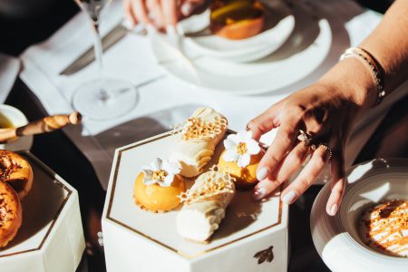 Servido no restaurante Le Lobby, o chá da tarde é assinado pela chef pâtissière Anne Coruble e traz o mel como principal ingrediente, em referência à coleção Bee, relançada este ano pela Chaumet. Entre as criações do menu estão a Fleur de Propolis, feita com mel de abacateiro e cera de abelha; a Alvéole Nacrée, um biscoito levemente cítrico com mel fresco; e o brioche de mascavo com creme cru e mel de trigo sarraceno. Nas opções salgadas, destaque para o frango crocante com foie gras e gel de vinho amarelo, além do barbajuan provençal com creme de pimentões. A ambientação do espaço acompanha o tema e foi pensada para remeter ao universo das abelhas, com detalhes florais e elementos inspirados em colmeias.