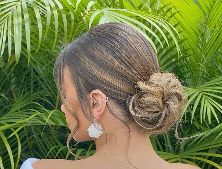 - Prenda o restante do cabelo em um coque baixo e soltinho.