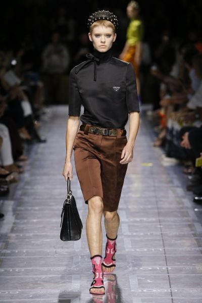 O icônico visual de Twiggy ganhou um toque futurista na Prada – cílios com cílios de aranha recebem um toque extra por meio de desenhos, enquanto a franja de bebê entrecortada deixa os olhos falarem por completo.
