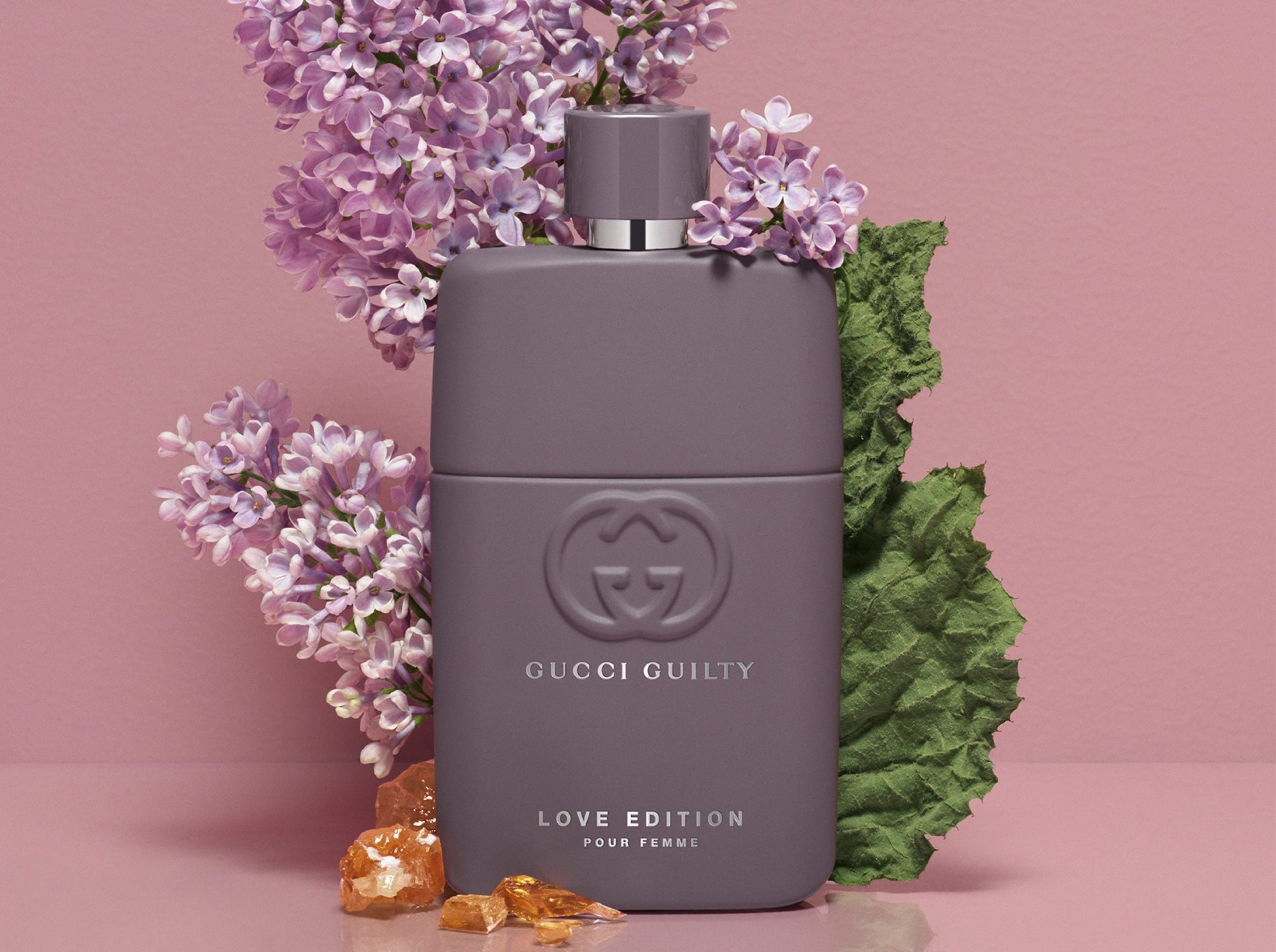 Gucci Guilty Love Edition Pour Femme, por sua vez, possui um frasco lilás e mistura Acorde de Lilás, Óleo de Patchouli e Acorde Ambarado Almiscarado em uma fragrância harmoniosa. O perfume se abre com um frescor floral sensual, onde as notas verdes do Acorde de Lilás oferecem uma doçura suave como mel que exala elegância. No coração, o Óleo de Patchouli complementa o Acorde de Lilás com sua riqueza amadeirada, enquanto o quente Acorde Ambarado Almiscarado na base adiciona profundidade e energia.