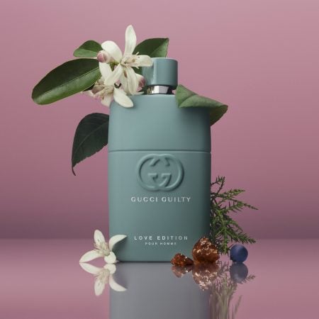 Em um frasco verde amendoado, a versão masculina Gucci Guilty Love Edition Pour Homme é composta por Óleo de Zimbro, Flor de Laranjeira Absoluta e Ambrofix. Com seus tons amadeirados e de couro, o Óleo de Zimbro adiciona um toque balsâmico e picante na abertura. No coração, a Flor de Laranjeira Absoluta personifica a beleza natural, equilibrando frescor e riqueza para criar uma nota floral cremosa. A fragrância é ancorada por Ambrofix, uma base quente e amadeirada que personifica desejo, paixão e sensualidade.
