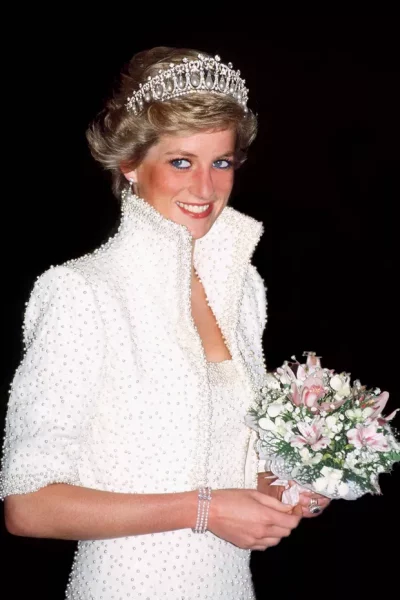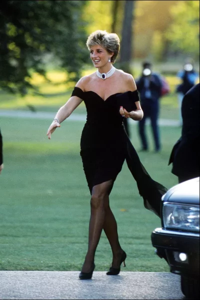 Há fotos que também resumem o glamour e, bem, o escândalo em torno da princesa: como o pequeno vestido preto que Diana usou depois que o príncipe Charles admitiu um caso na televisão nacional, agora lembrado na cultura pop como o “vestido de vingança” – tem até sua própria página na Wikipedia. Ou considere seu vestido de noiva, completo com mangas bufantes e uma cauda de 7 metros.
