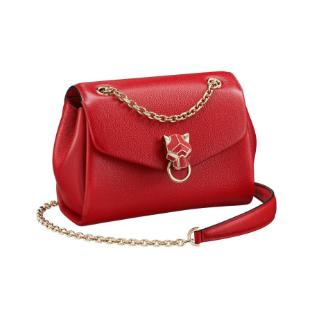 A bolsa Panthère de Cartier é uma personificação tridimensional de Panthère: urbana, elegante, destemida. Assim como as criações de joalharia, cada detalhe é executado de acordo com os mais elevados padrões. Com metal facetado e acabamentos em dourado ou em paládio, a cabeça de pantera no fecho da bolsa confere ainda mais personalidade à peça que, quando aberta, revela um mini espelho que é assinatura das bolsas Cartier. A bolsa pode ser encontrada em diferentes cores nas versões pequena e média.