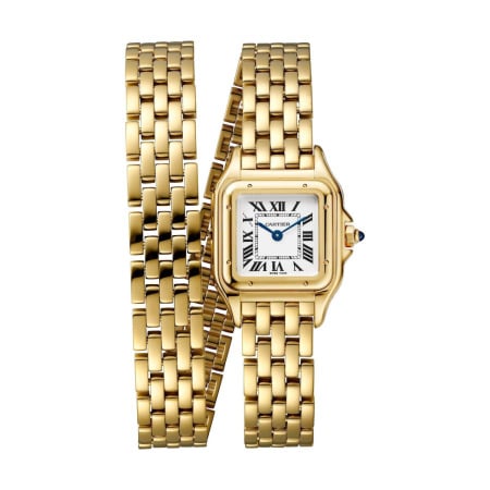 Figura icônica da linha, o relógio Panthère celebra, este ano, 40 anos. Em 1983, ele nasceu como um relógio jóia, e sua aura sexy e glamourosa conquistou mulheres do mundo todo imediatamente – e nas décadas seguintes. Com sua estrutura ultraflexível, ele está disponível nos modelos pequeno e médio em ouro amarelo, branco e rosé. O modelo foi revisitado algumas vezes, sempre mantendo os tradicionais mostradores prateados com numerais romanos, o bisel com cantos arredondados e os ponteiros azulados em formato de espada.