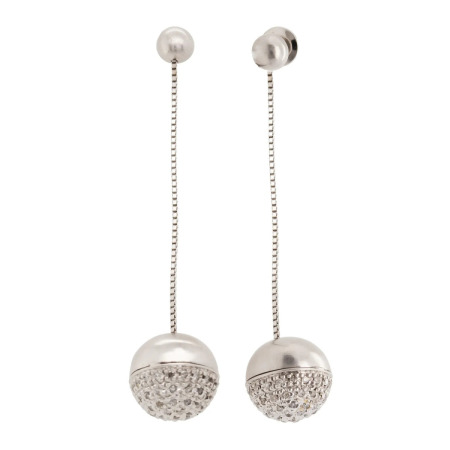Brinco pêndulo de bolas fosca com diamantes em ouro branco