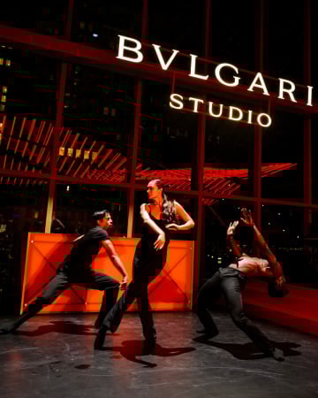 Durante a noite, incorporando a essência dinâmica e o espírito experimental do Bvlgari Studio, uma mistura perfeita de diferentes performances animou os vibrantes espaços do local com vista para o skyline de Nova York, em uma dança fluida de visões criativas.