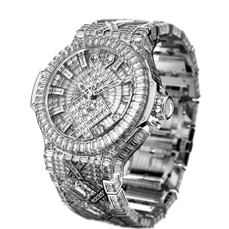 Revestido com 260 quilates de diamantes e equipado com turbilhão. Um relógio pensado para ostentar poder absoluto.