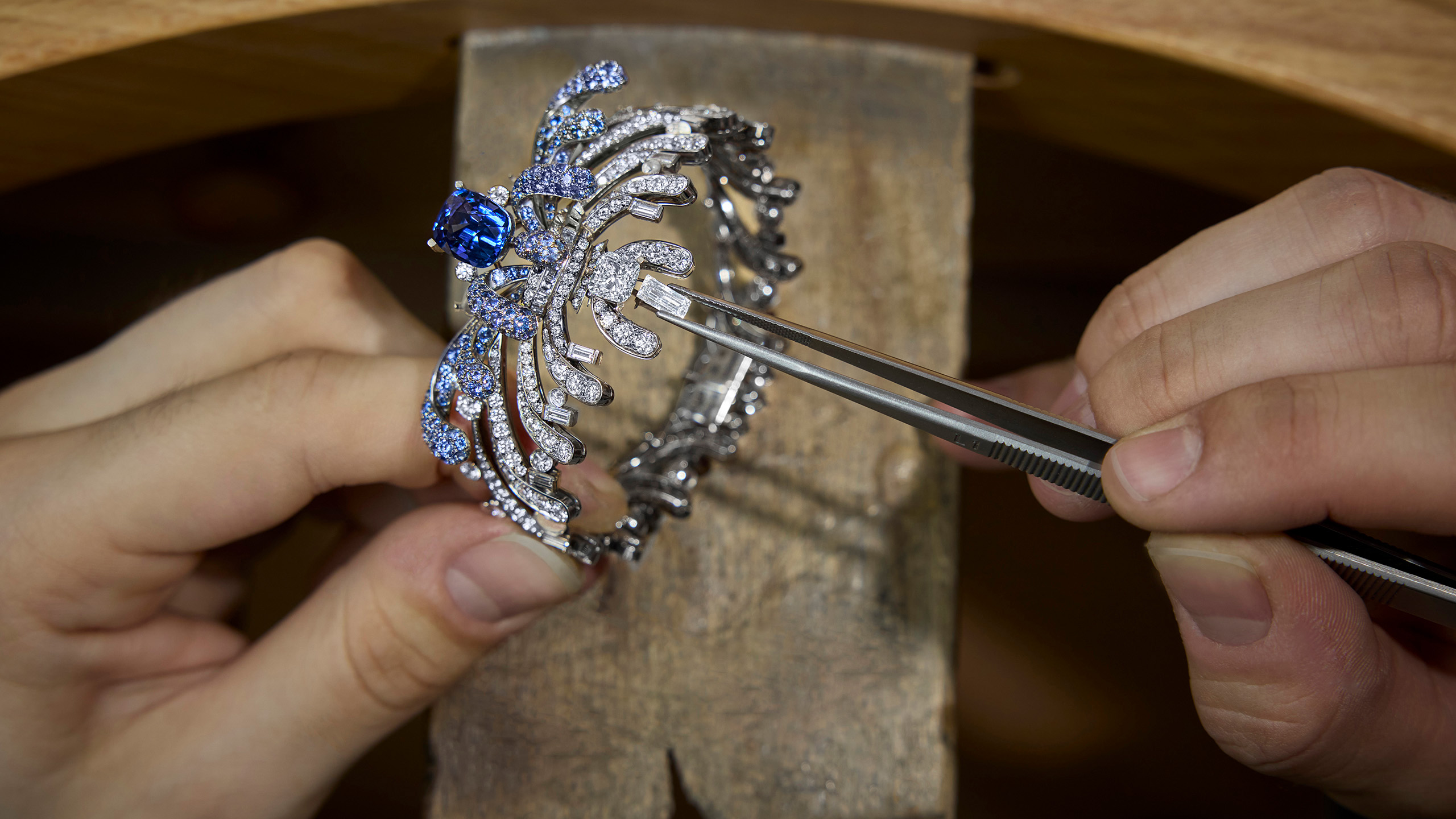Eternizada na linha Eaux d’Artifice — nome que remete ao curta-metragem de Kenneth Anger, de 1954 — a coleção traduz a feminilidade misteriosa da água em peças como três conjuntos únicos, três anéis de coquetel e um colar centenário, todos produzidos nos ateliês de alta joalheria da Maison em Paris.