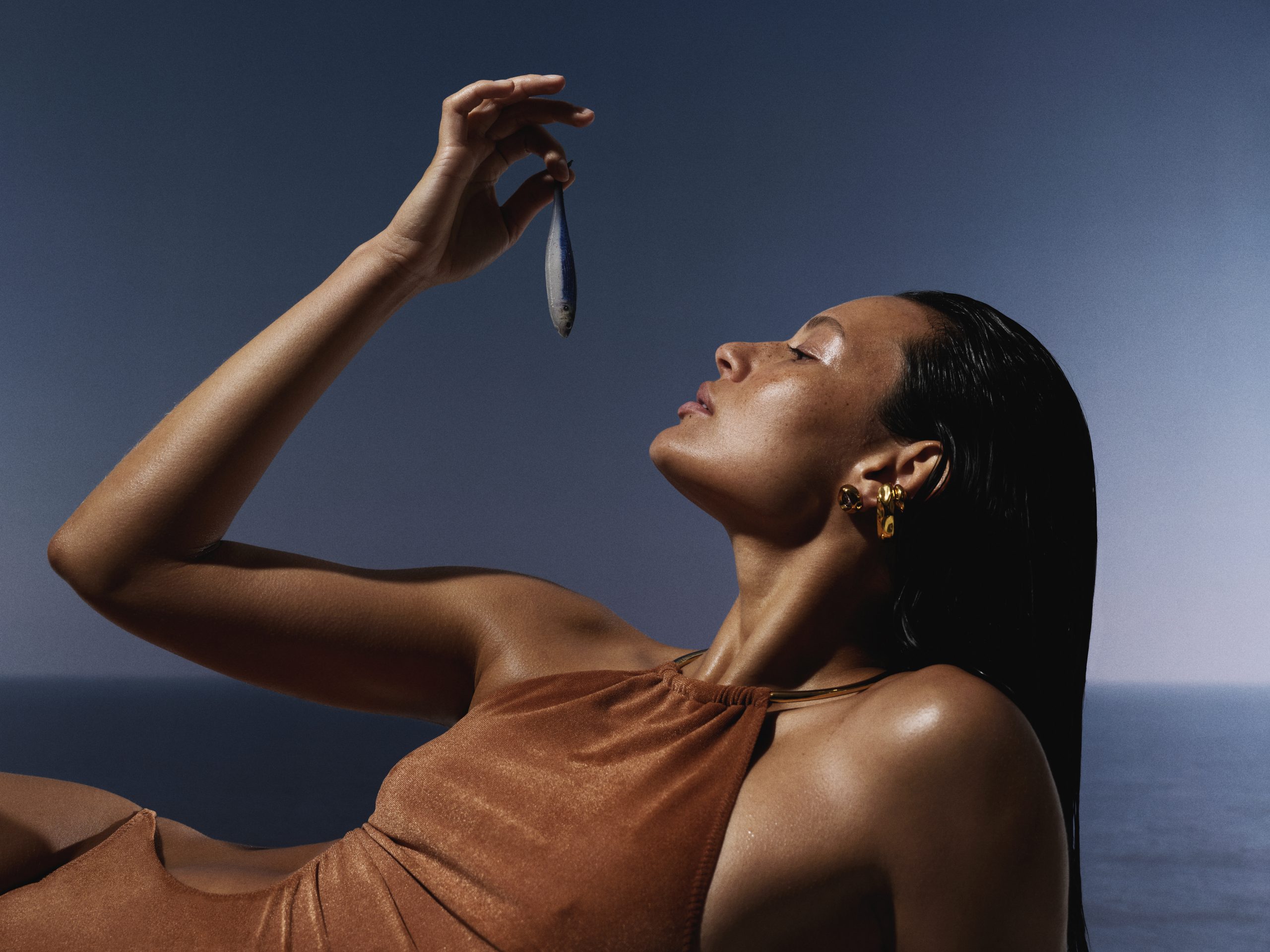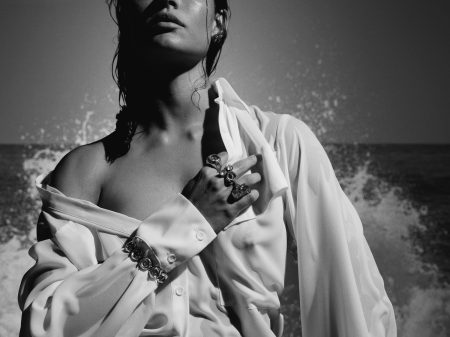 Os elementos marítimos se revelam em peças esculpidas organicamente com círculos, curvas e linhas que evocam o vai e vem das ondas. O movimento do mar se reflete em volumetrias suaves e no uso de cristais em diferentes tamanhos e lapidações, criando um jogo luz que remete ao brilho da água sob o Sol. A paleta, que mescla banhos dourados e prateados, explora o toque criativo da coleção.