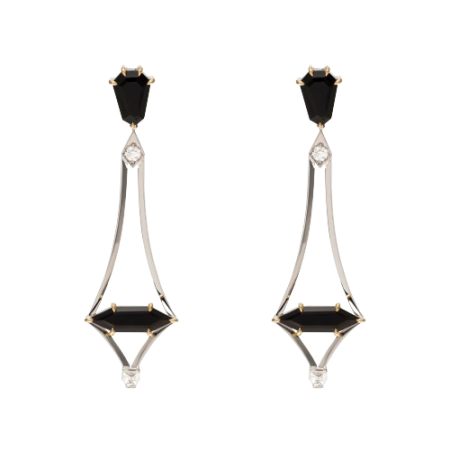 Ouro branco e amarelo 18k, turmalina negra 15,41 ct, diamante 0,70 ct. Preço: R$ 49.400,00.