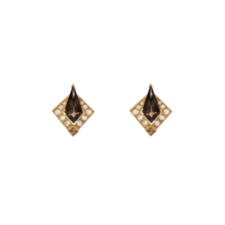 Ouro amarelo 18 k, quartzo fumê 2,16 ct, diamante light brown 0,12 ct si, diamante 0,35 ct. Preço: R$ 17.900,00.