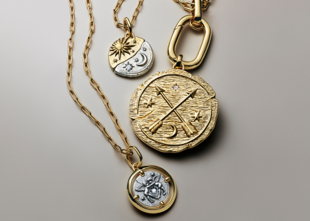 A coleção é composta por doze designs com inscrições em latim, como amor vincit omnia (“o amor conquista tudo”) ou per aspera ad astra (“por caminhos difíceis até as estrelas”). Combinadas a poderosos símbolos como corações, luas e estrelas, cada Pandora Talisman conta uma história rica em significado.