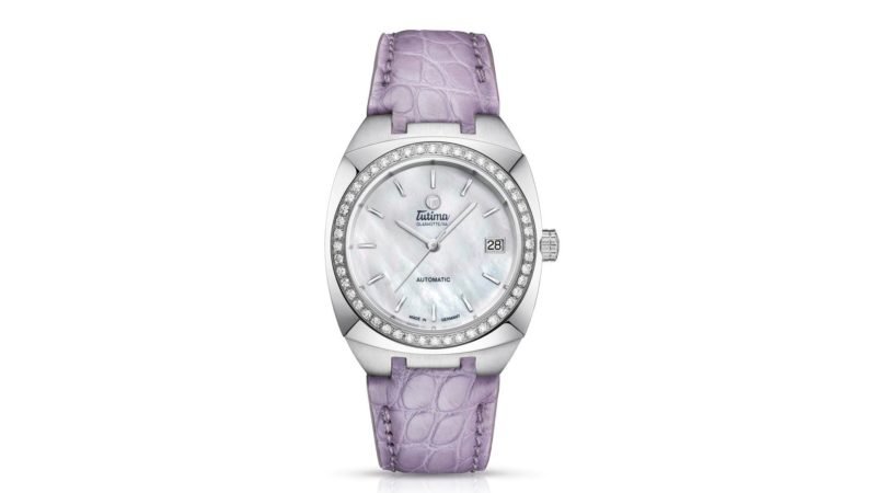 Uma ótima versão da pervinca foi lançada pela marca alemã Tutima, com seu relógio Saxon One Lady Diamonds: cravejado de diamantes com uma pulseira de couro desta cor e um mostrador madrepérola com leves tons de lavanda. O relógio de 36 mm mostra data, segundos, horas e minutos e tem 42 horas de reserva de energia. Feito em aço inoxidável, é vendido por US$ 6.100 (cerca de R$ 33 mil) e é resistente à água a até 100 metros de profundidade.