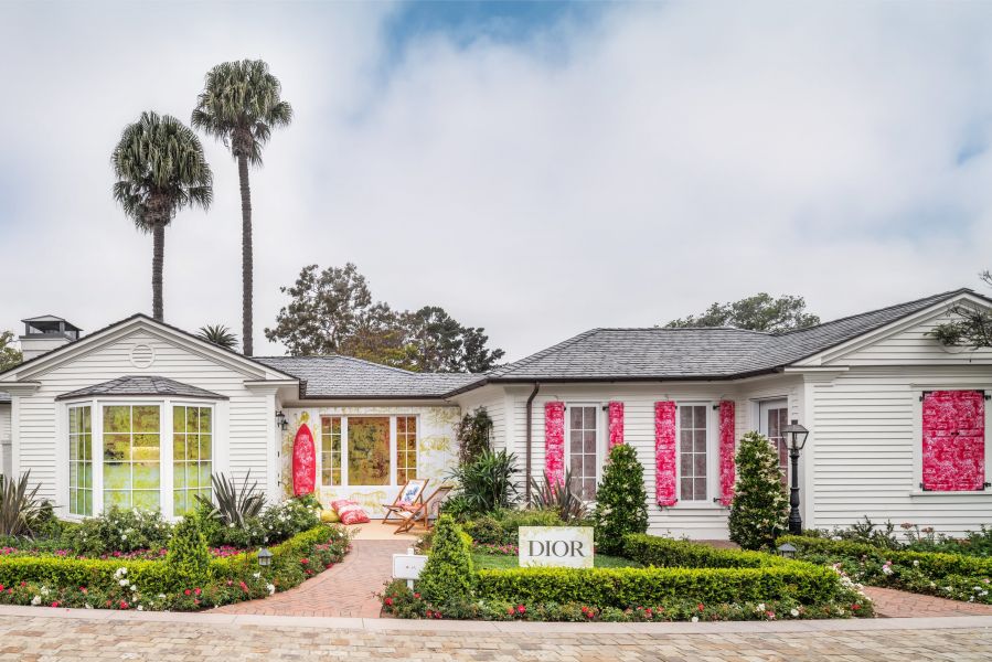 Como parte da experiência global da Dioriviera, a Dior leva você a uma luxuosa escapada à beira-mar até seu pop-up em Montecito, Califórnia. O resort à beira-mar celebra a coleção Dioriviera enquanto cria uma experiência de compra única. Os hóspedes podem fazer compras dentro das suítes do bangalô, onde são recebidos com toile de Jouy rosa neon e gravuras chartreuse de Maria Grazia ao longo das paredes. Com guarda-sóis, redes e cadeiras dobráveis fora da suíte, os hóspedes podem relaxar nos pontos de encontro temáticos e na área da piscina. A marca também abriu pop-ups em Capri, Mykonos, Ibiza e muito mais.
