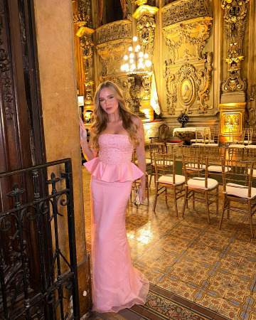 A tendência da cor rosa continua em alta e promete se manter como destaque neste ano. Para as madrinhas, o tom de rosa bebê é uma escolha elegante, feminina e suave, produzindo looks encontadores e dreamy. Procure por diferenciar a sua produção para sair do óbvio, com detalhes especiais como cut-outs estratégicos ou técnicas de drapeamento.