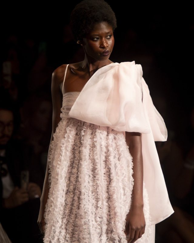 A coleção trouxe, em grande parte, vestidos como ponto alto. Suas silhuetas e propostas, no entanto, foram bem diferentes. Na coleção há opções que lembram lingerie, com menos informação, e até peças com grande volume nos quadris.