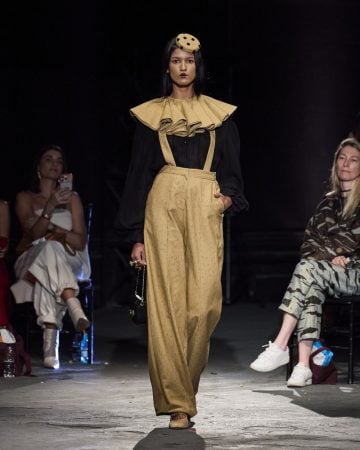 As cores e padrões também lembram o universo circense, com listras e tons terrosos. Os babados e texturas também não ficaram de fora, fechando a narrativa construída pela estilista.