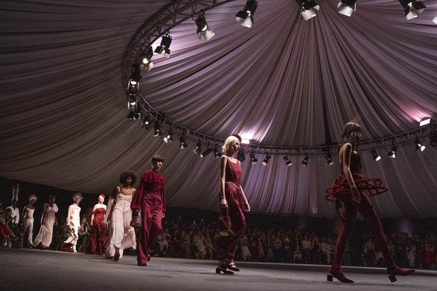 Sob o olhar criativo de Ana Luisa Fernandes, a marca transformou o espaço em uma tenda nostálgica — com direito a show de malabaristas e banda ao vivo.