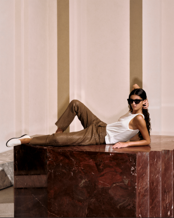 Compondo a estética minimalista, os tons neutros e terrosos, como off white, oliva, mascavo, preto e taupe, constroem a base da paleta, que conta com alguns pontos de cor estratégicos, como o light blue, e estampas como paisley e maxi poá.
