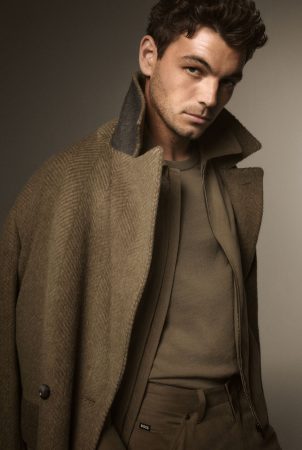 Com sua mais nova coleção, BOSS traz riqueza e calor aos meses mais frios, com ênfase em combinações tonais importantes: uma paleta de verde-sálvia e cinzas escuros contrastando com tons decadentes de chocolate. Esse impressionante espectro de tons eleva o clima da campanha e comunica a coesão elegante encontrada nos looks para o frio da BOSS para 2025.
