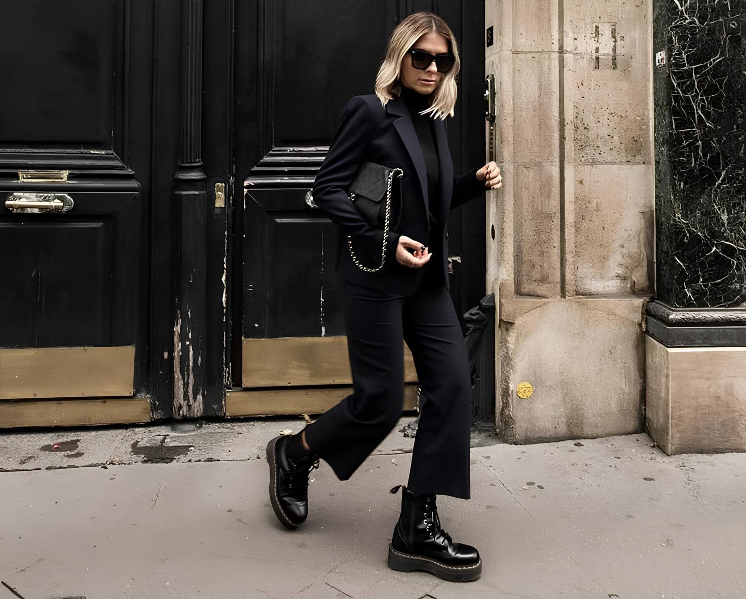 Outra produção urbana certeira é combinar coturno com jeans skinny ou wide-leg e jaqueta de couro ou blazer. E se quiser ousar, experimente usar com slip dress e meia-calça para um look grunge-chique cheio de personalidade.