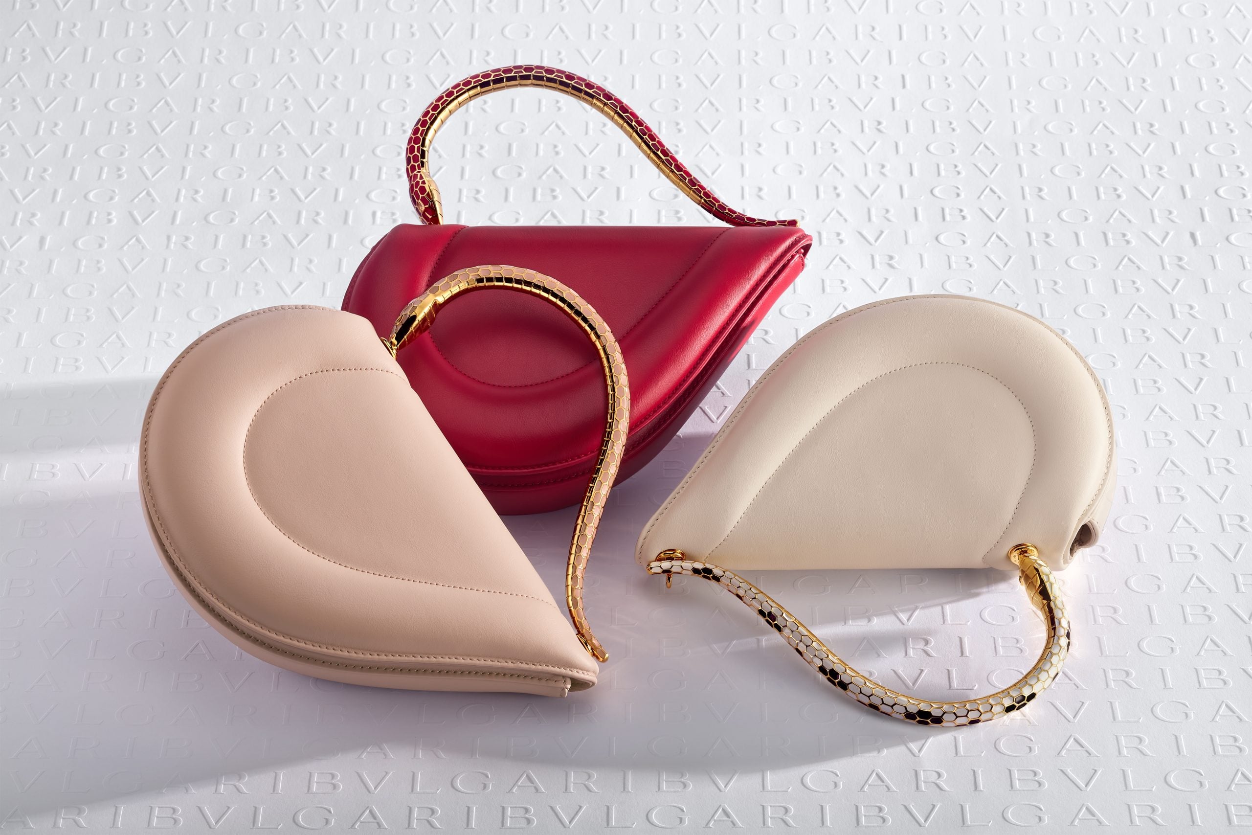 Em 2025, o Ano da Serpente no zodíaco chinês, a Bvlgari celebra esse símbolo de metamorfose e transformação — um verdadeiro emblema da Maison — com uma nova adição ao fascinante universo Serpenti: a bolsa Serpenti Cuore 1968. Como o nome sugere, seu formato distinto remete a duas metades de um coração: uma formada pelo corpo da bolsa e a outra por sua sinuosa alça dourada em forma de serpente. Uma declaração de amor a um dos ícones mais duradouros da Bvlgari.