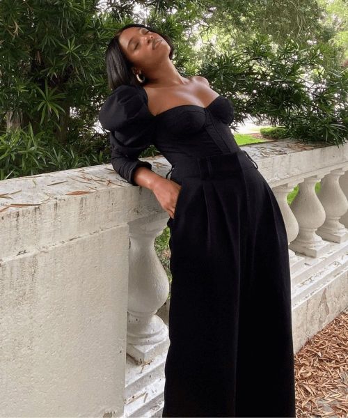 Se você deseja um visual mais elegante e sofisticado, e com aquela carinha invernal, a combinação de corset com mangas longas e calça pantalona de alfaiataria é a opção perfeita. Para trazer um toque de modernidade e informação de moda para a produção, vale investir em modelagens com volume e amplitude em lugares estratégicos, como mangas bufantes e pregas.
