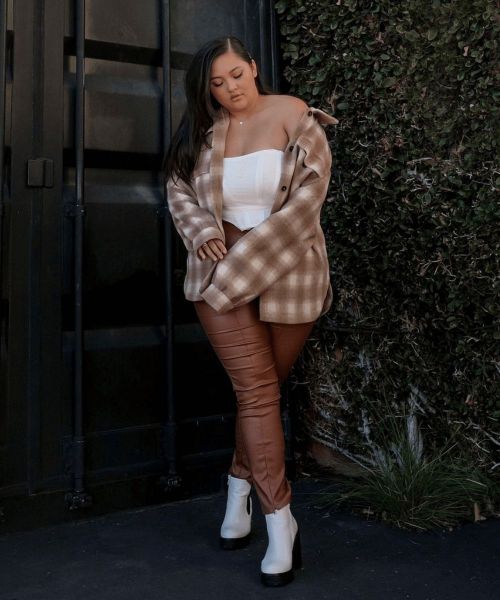 Não existe composição que seja mais a cara do inverno 2022, do que a combinação de corset + calça de couro – ou P.U. Para fugir do óbvio, aposte em uma cartela de cores em tons terrosos, assim você tem um visual aconchegante, mas super descolado e fashionista. Como dissemos no começo, o grande segredo para trazer os looks com corset para a temporada mais fria, são as terceiras peças. Uma boa opção é investir em modelos atemporais, como as shackets, por exemplo.