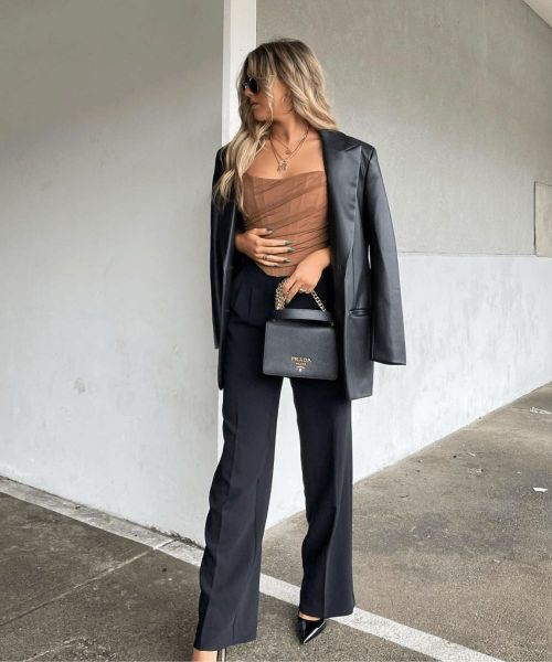 Apesar de transmitir um visual mais sensual, também é possível adaptar os looks com corset para o trabalho. Claro, levando em consideração o dress code que a sua empresa pede. Aposte na combinação da peça, com uma calça de alfaiataria reta e um blazer – que pode ser de couro ou P.U, caso o ambiente não exija uma produção super formal. Opte por uma paleta de cores mais sóbrias, assim você terá um visual elegante e cheio de autoridade.