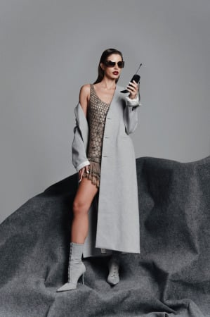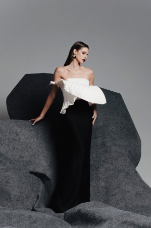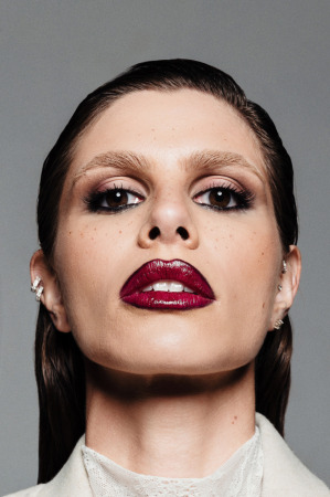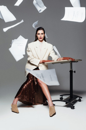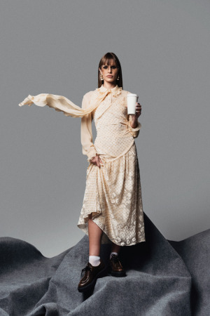 Neste editorial de estreia, ela propõe uma leitura própria do estilo “Corporate Core”, com foco na alfaiataria. As peças escolhidas refletem cortes sofisticados e tons de destaque, como o butter yellow e o vinho, que são tendências fortes para a temporada. Na estética, combina a leveza e o peso em um mix de contrastes entre o romântico e o masculino, apostando também em uma beleza fora dos padrões, com sobrancelhas descoloridas e maquiagem elegante, além de cabelo molhado, para um visual ousado.