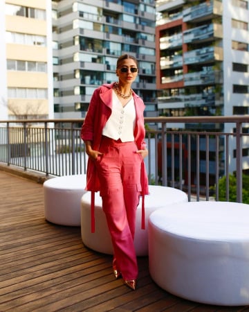 O rosa pink está sempre em alta.  Seja em um vestido ou em uma alfaiataria, o rosa fica elegante e colorido. Gosto de montar conjuntos monocromáticos que carregam sofisticação e seriedade, ao mesmo tempo que mostram um lado mais fashionista e divertido. Se você quiser fugir do básico, usar um item rosa é a maneira certa!