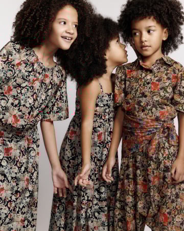 Desenvolvidos manualmente no ateliê, os motivos românticos com desenhos florais exclusivos e o clássico paisley destacam algumas das peças mais marcantes para mães e filhos em cartela de cor inspirados por um jardim de flores deslumbrantes.