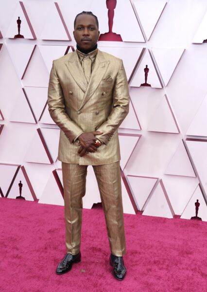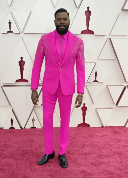 Os homens se destacaram no tapete vermelho com looks monocromáticos que vão do tradicional pretinho básico, até cores diferentes como o suit&tie totalmente dourado de Leslie Odom Jr., da maison Brioni, e o de Colman Domingo, que vestiu um conjunto rosa-choque da Versace. Essa moda pega, meninos?