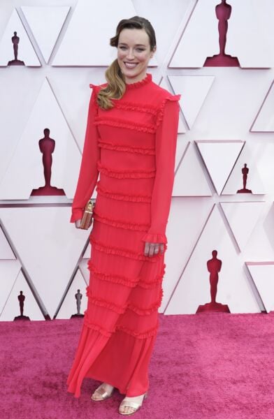 De fato, o Oscar 2021 foi marcante no mundo da moda, pois diversos artistas aproveitaram para ousar e fazer coisas diferentes nas produções após tantos meses sem passarem pelo tapete vermelho. As clutches de algumas celebridades se destacaram na cerimônia, tendo até uma com desenho de camarão usada pela Erica Rivinoja (foto abaixo).