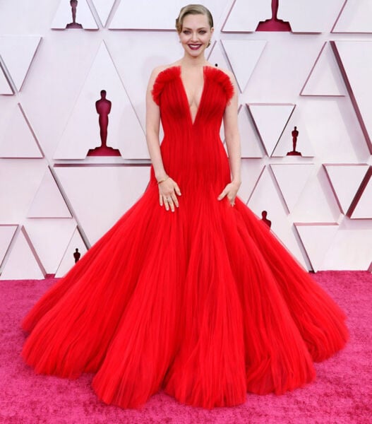 A cor mais romântica que existe não faltou no tapete do Oscar 2021. Desde a leveza do vestido de Amanda Seyfried por Armani Privé, até um tom mais dramático como o Dior de Reese Whiterspoon, o vermelho sempre está em voga nas premiações e chama a atenção pela elegância por si só.